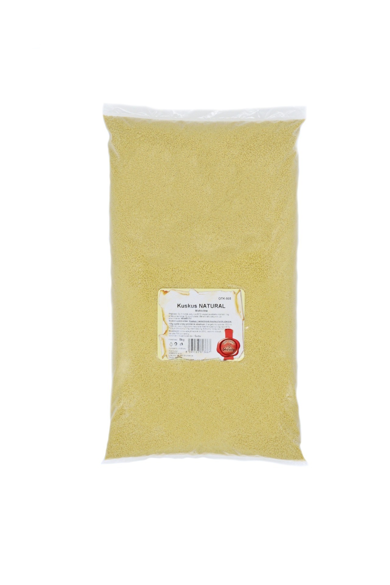 Příprava: 1kg kuskusu za stálého míchání vsypeme do horké vody cca 90°C a necháme 10 minut odstát.