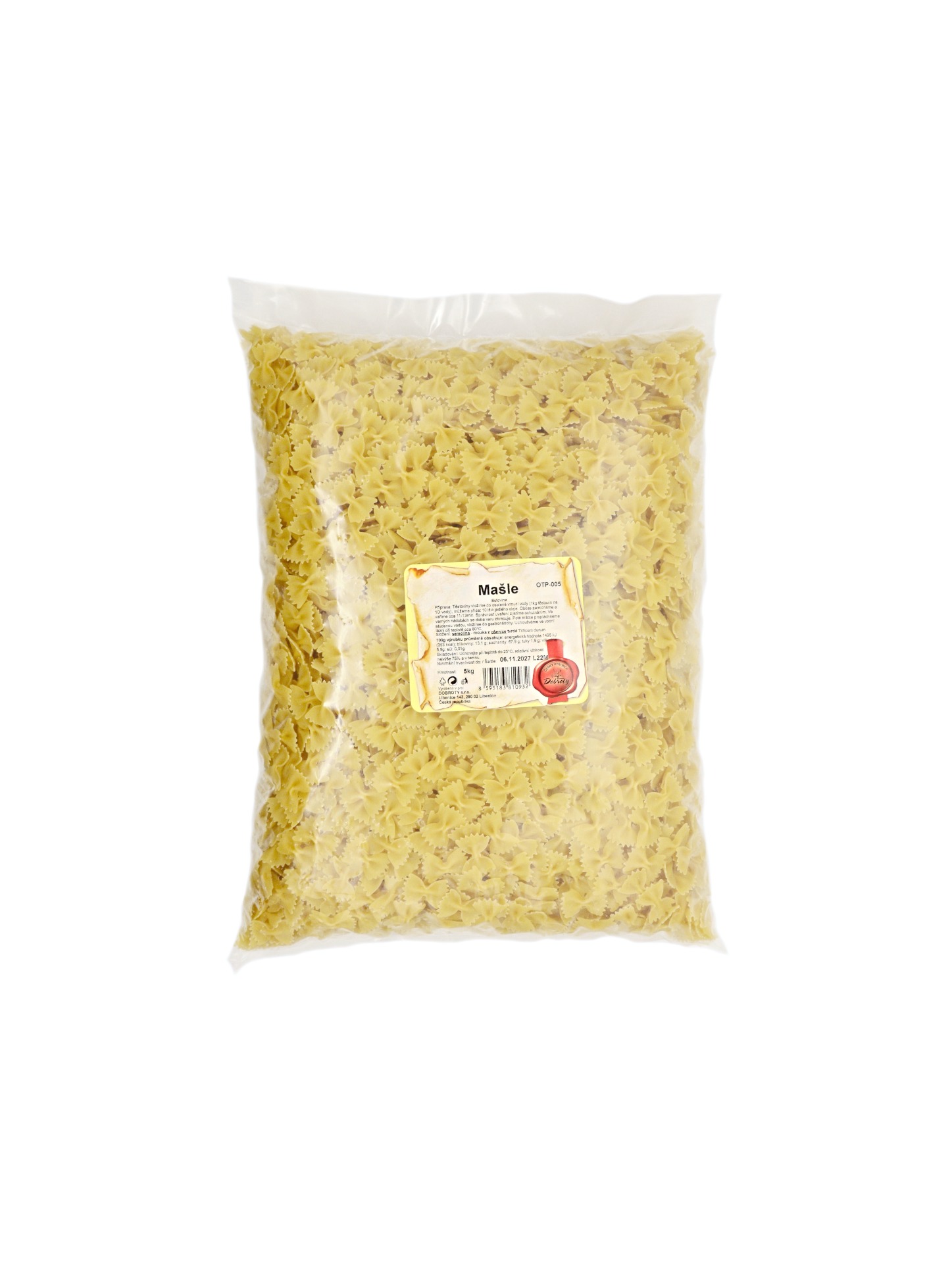 Semolinové těstoviny ve tvaru mašle. Vhodné do salátů, jako příloha k omáčkám, nebo na sladko.