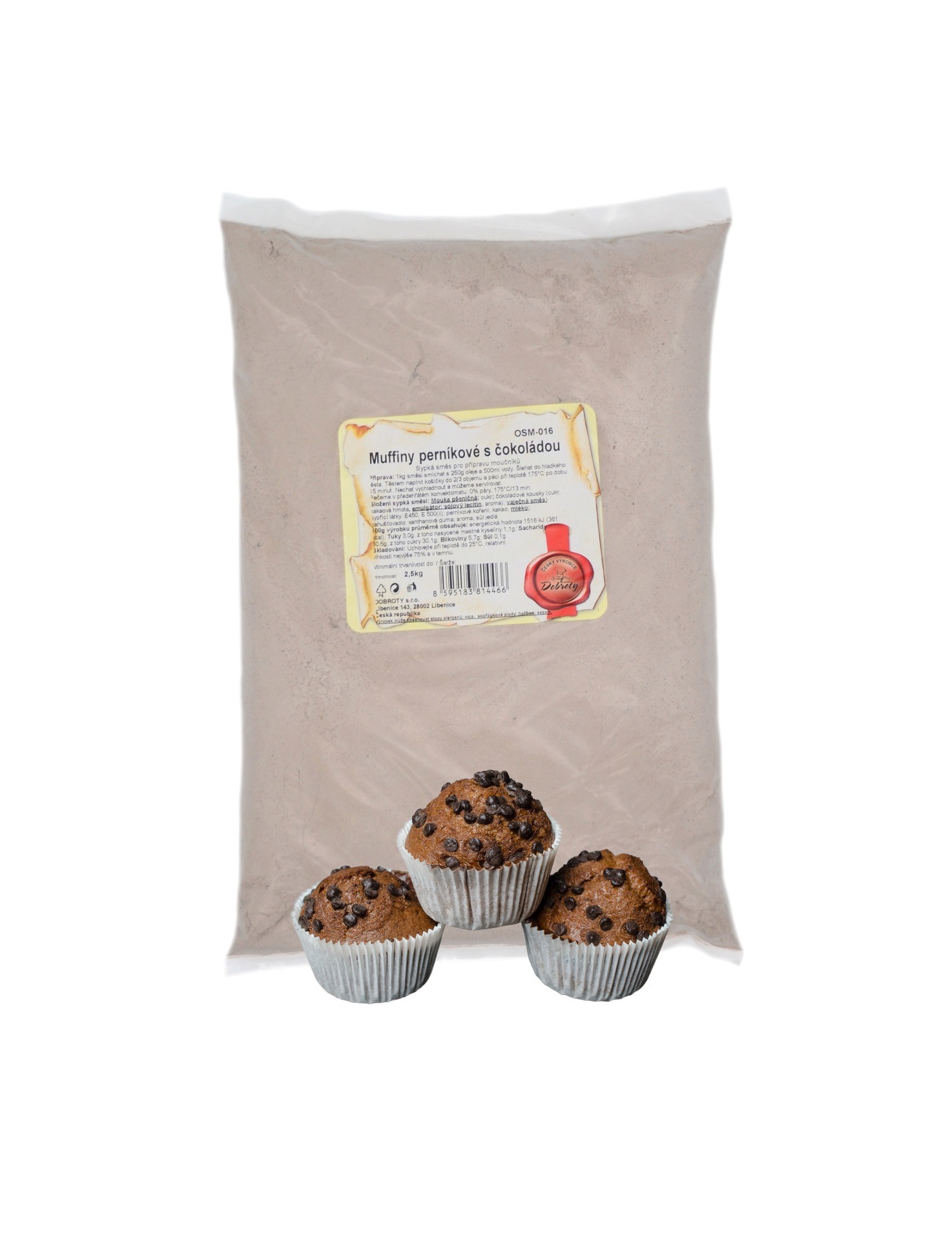 Příprava: Odvážené množství směsi smícháme s odměřeným množstvím vody a oleje. Vyšleháme do hladkého těsta. Těstem naplníme košíčky do 2/3 objemu a pečeme při teplotě 175°C po dobu 15 minut. Necháme vychladnout a můžeme servírovat. V konvektomatu pečeme při 0% páry na 175°C po dobu 13 minut.