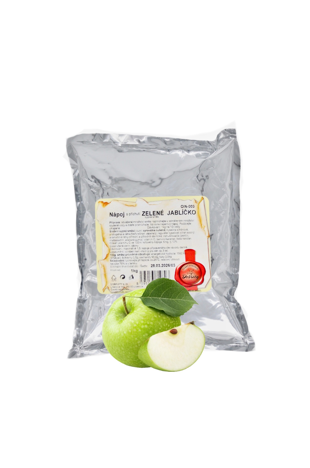 Sypká směs pro přípravu nápoje s příchutí zeleného jablka.