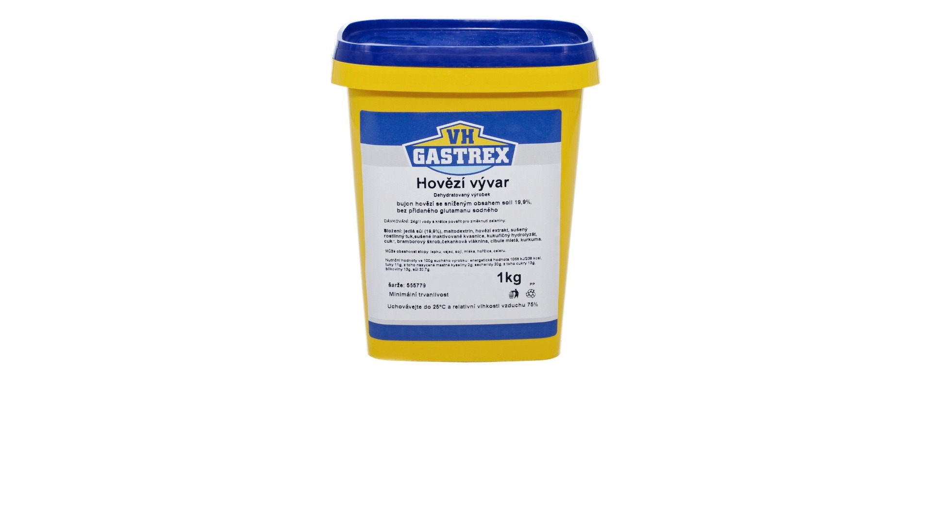 Hovězí bujón se sníženým obsahem soli, bez přidaného glutamanu. dehydratovaný výrobek