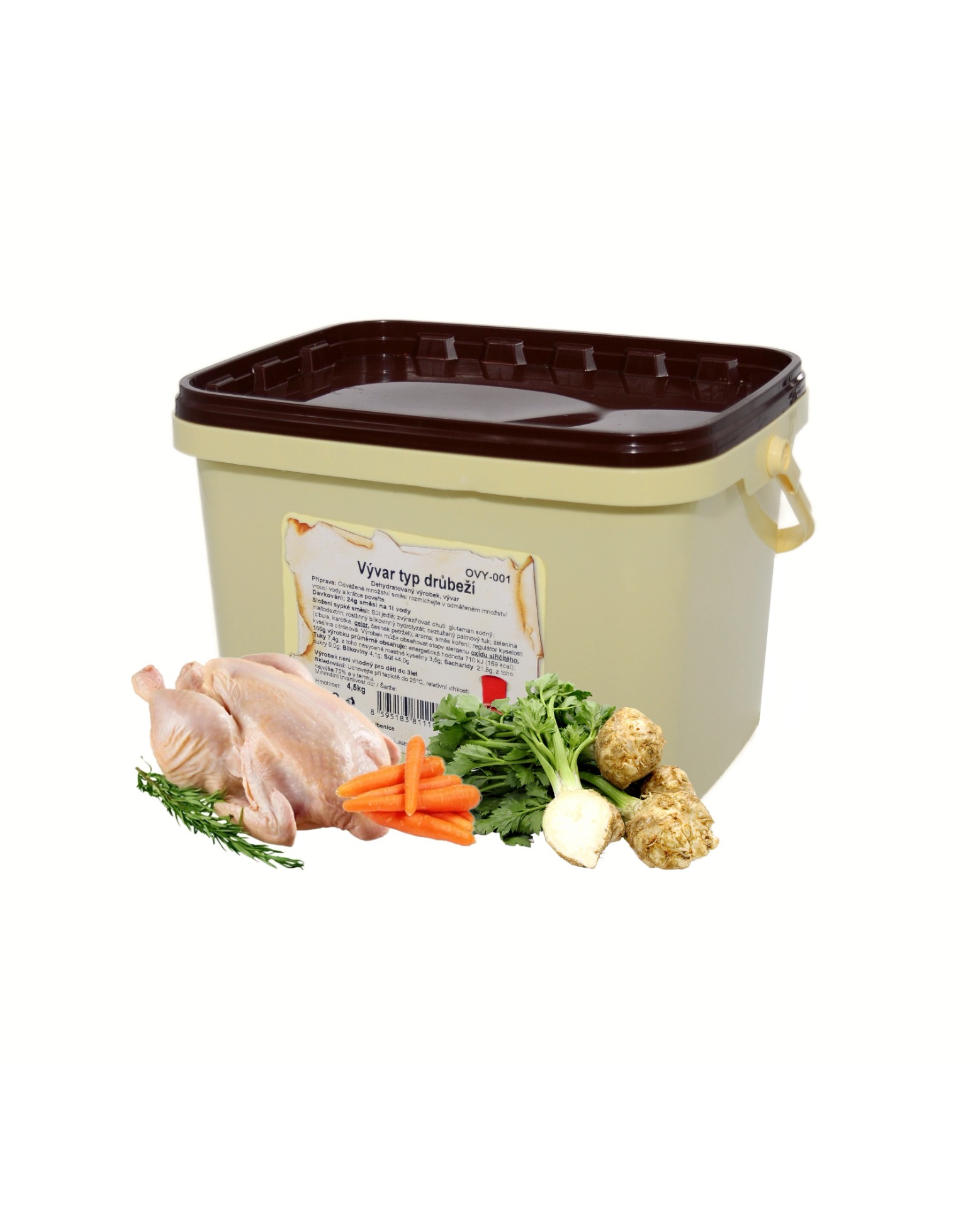 Výtěžnost: Z 1 kg směsi připravíme 41l vývaru. Při porci 200g připravíme cca 205 porcí.